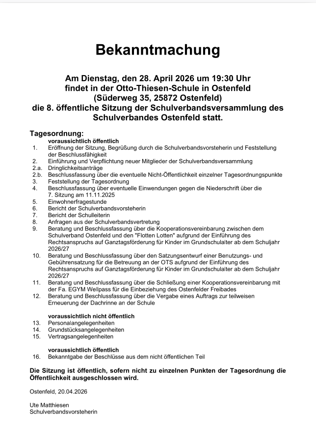8. öffentliche Sitzung der Schulverbandsversammlung